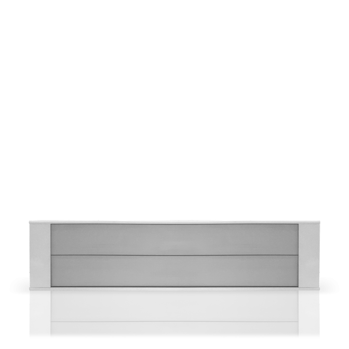 Medium-temperature radiant heater (Dybox MT) with a coated electro-galvanised steel body, ideal for heating large, high-ceiling spaces without air displacement or stratification, ensuring efficient warmth in both summer and winter. Specifications: 230V single-phase - 1500W - Class 1: IP34 and IK08 - 120,0 x 28,0 x 6,8 cm - 10,4 kg. Features a user-friendly design that prevents overheating, ensuring exceptional lifespan, and allows easy installation for ceiling-mounted or suspended (chain) setups. Optional semi built-in thermostat (TSE10) available, adjustable from 10 - 30°C.